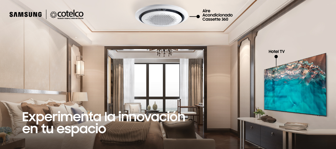 Los TV hoteleros Samsung, también ofrecen un conjunto de funciones de acceso remoto a través de una solución centralizada, lo que les permite gestionar cómodamente todo su ecosistema de pantallas para aumentar la eficiencia y maximizar el impacto. Con Samsung, ofrece hoy el futuro del entretenimiento en la habitación; ambientando los espacios con el mayor nivel de confort y eficiencia, nuestra gama de productos logra llevar a otro nivel los sistemas de climatización ofreciendo no solo una apuesta en escena de diseño innovador sino también de ahorro energético con tecnologías exclusivas como WindFree y el Cassette 360.