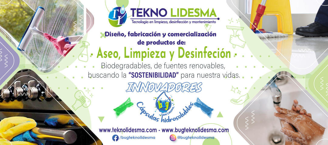 Empresa dedicada al diseño, fabricación y comercialización de productos químicos para limpieza, aseo, desinfección y mantenimiento en los sectores hogar, institucional e industrial; Biodegradables y con materias primas que provienen de fuentes renovables, y con nuestro último lanzamiento BUG-TEKNOLIDESMA, hiperconcentrados en empaque hidrosoluble buscando la “SOSTENIBILIDAD” para nuestra vidas.